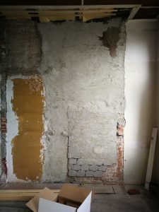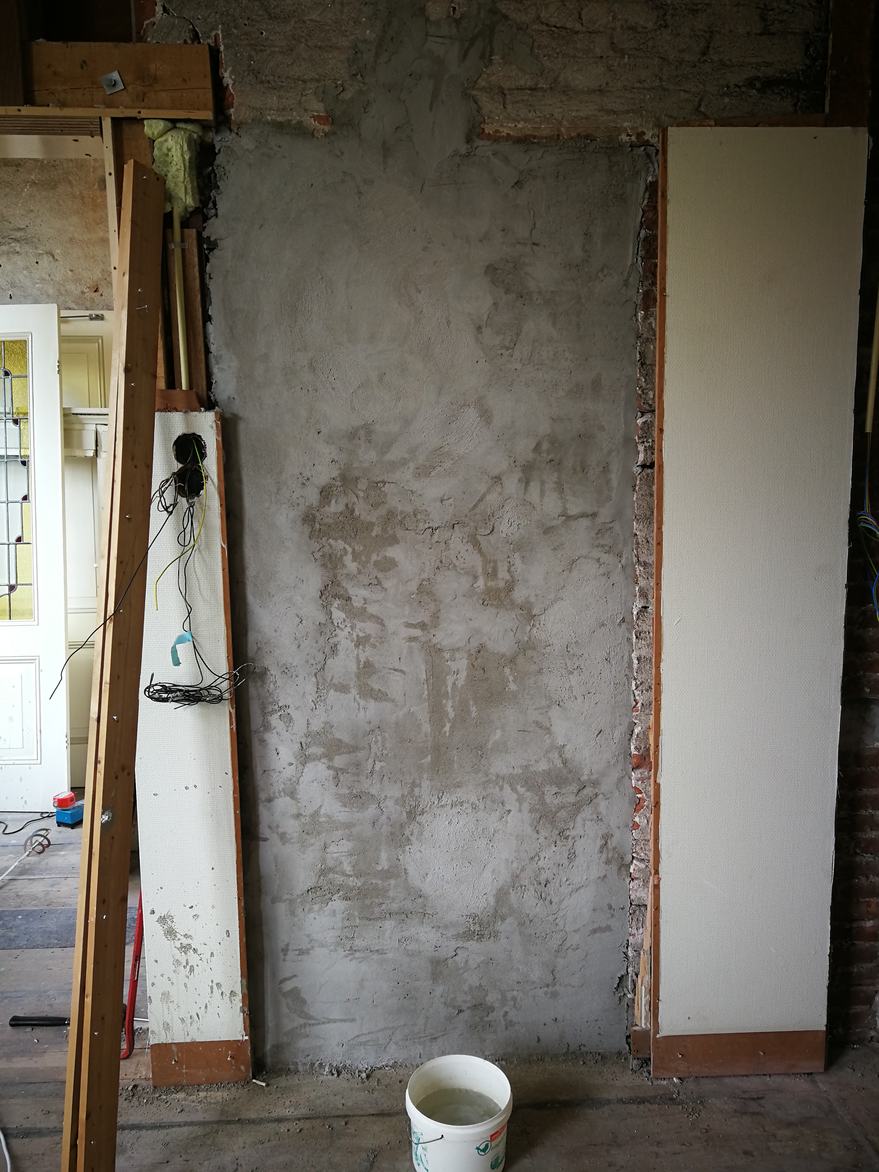 Hier is de muur van de andere kant, vanuit de woonkamer te zien.